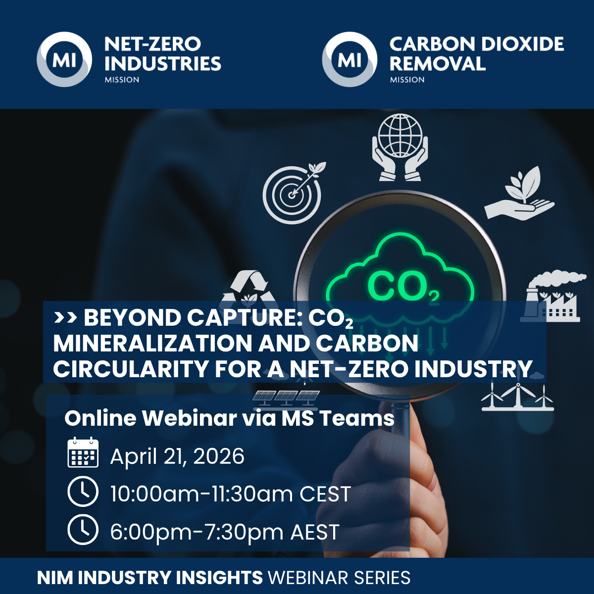 Join us for our upcoming NIM Industry Insights Series webinar “Beyond Capture: CO₂ Mineralisation and Carbon Circularity for a Net-Zero Industry”, organised jointly by the Net-Zero Industries Mission and the Carbon Dioxide Removal Mission on 21 April 2026.